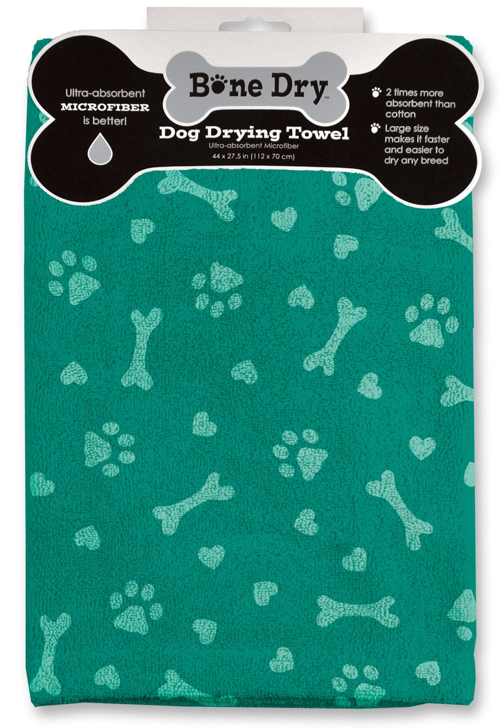 Bone Dry Microfiber Pet Drying Towel – Printed Hearts, Teal, 44×27.5″