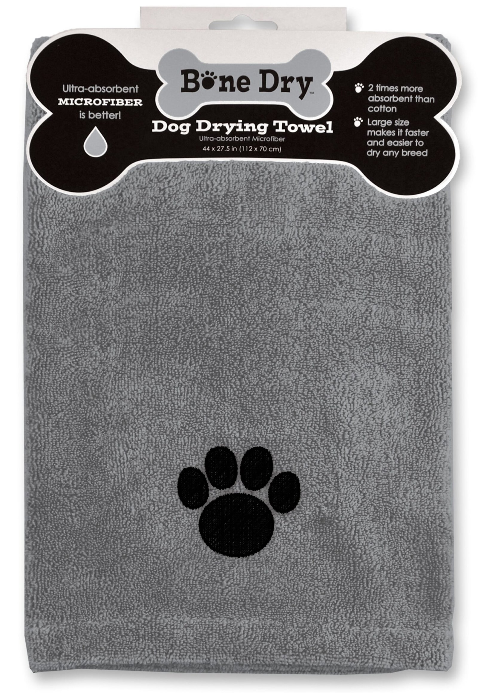 Bone Dry Microfiber Pet Towel, Embroidered Bone, Grey, 44×27.5″
