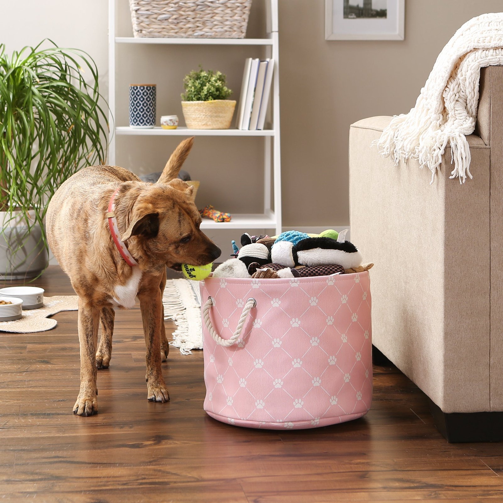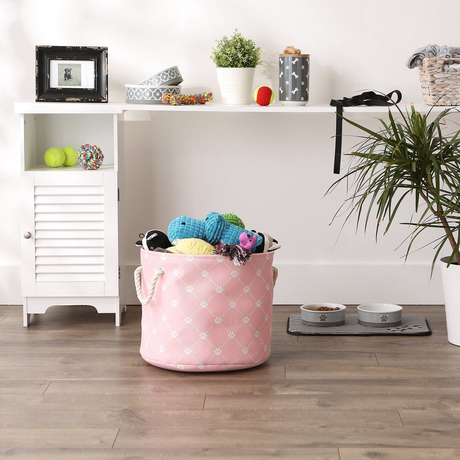 - Keep your pet toys, blankets and other supplies tidy with these adorable collapsible pet bins. Wipe clean with a damp sponge as needed.