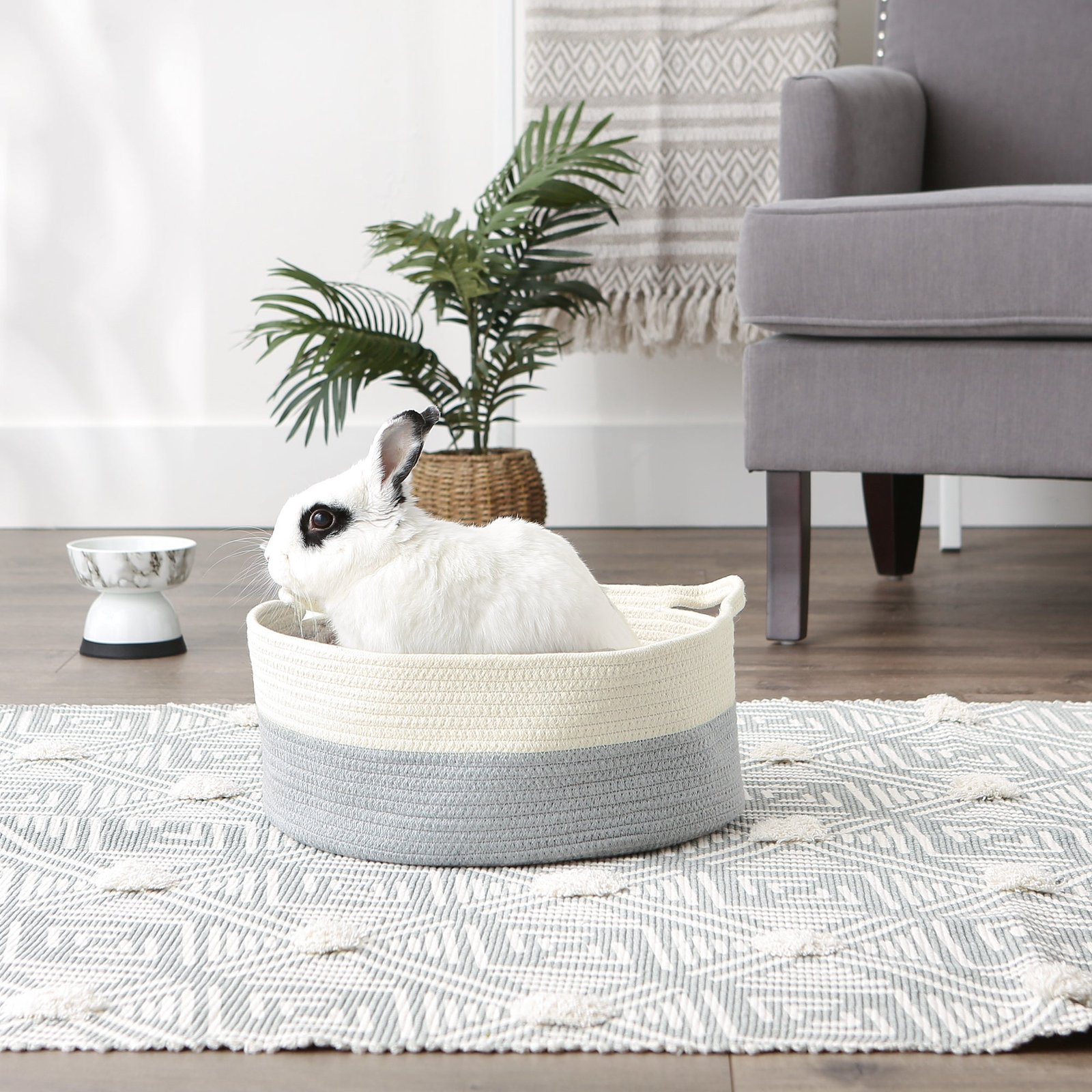 White & Gray Cotton Rope Cat Ears Pet Basket