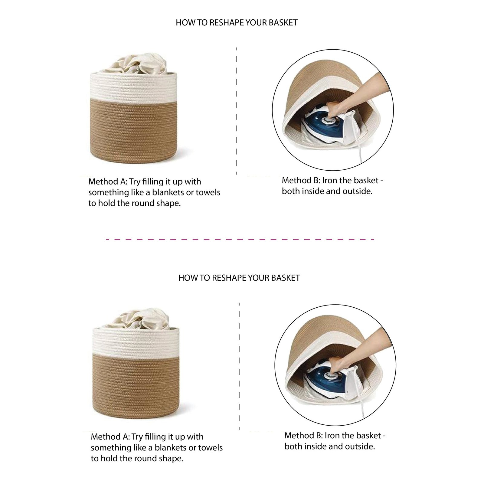 - Light weight durable cotton rope material. Two tone design available in many trendy and fun colors. A light weight solution to many storage needs, pet blankets, accessories and toys.